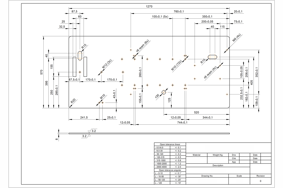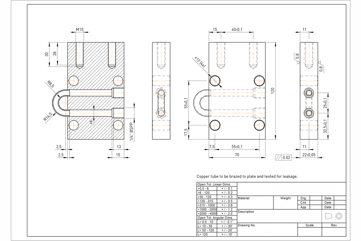 Some drawing samples. Note the neatness and dimension spacing. Title block details have been blanked out for confidentiality.
